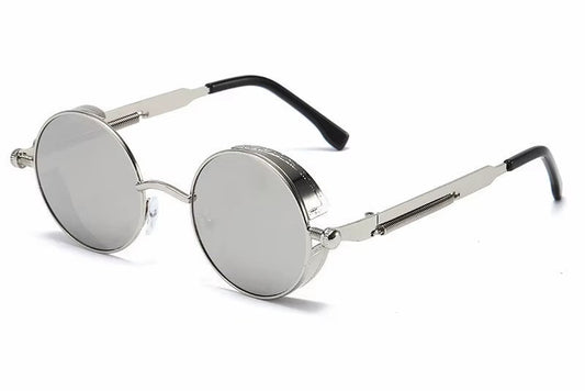 Lunettes de soleil rondes Steampunk en métal – Lunettes de créateur unisexes UV vintage